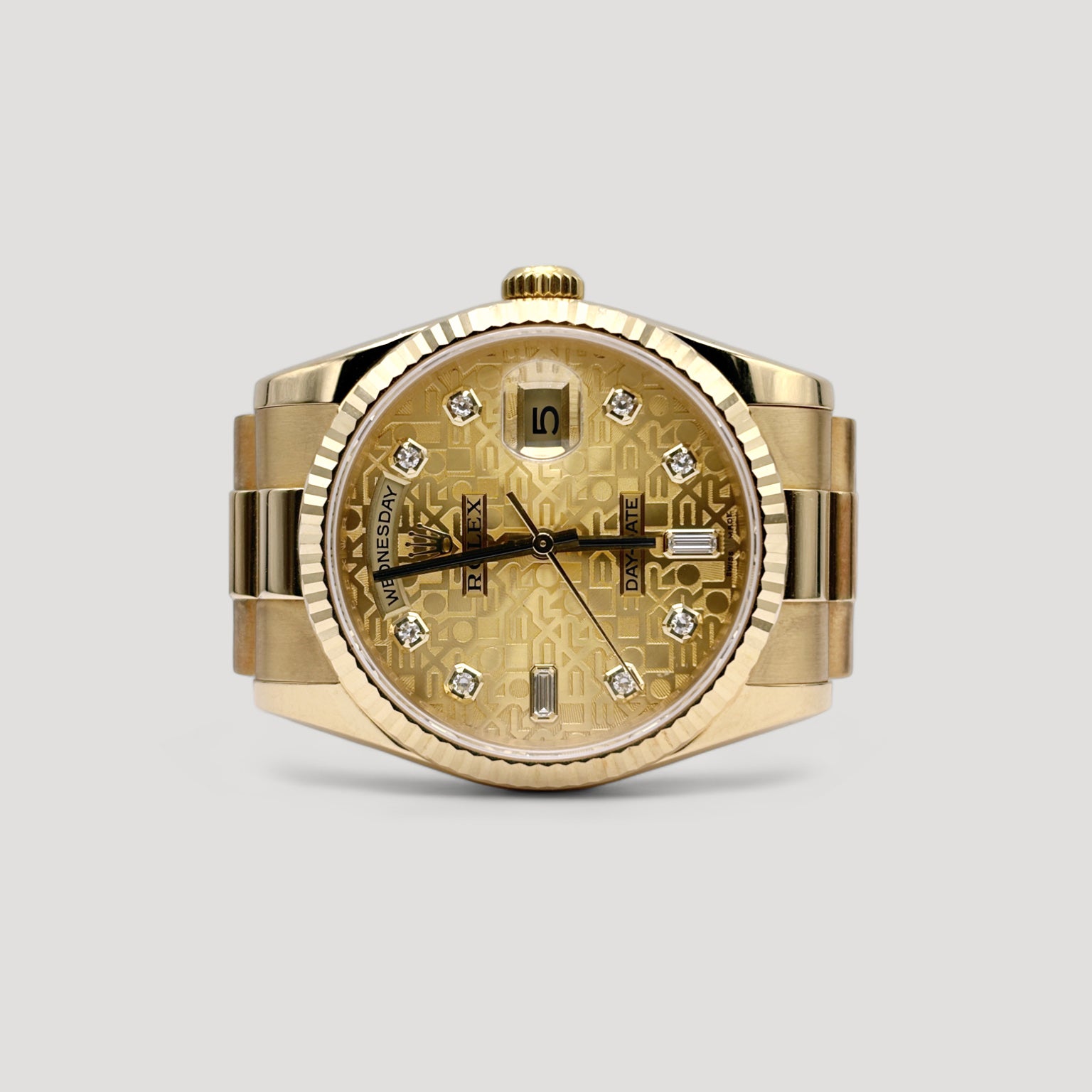 Mint Rolex Day Date "President" Computer Dial w/ Baguette Diamond Yellow Gold 36mm 118238