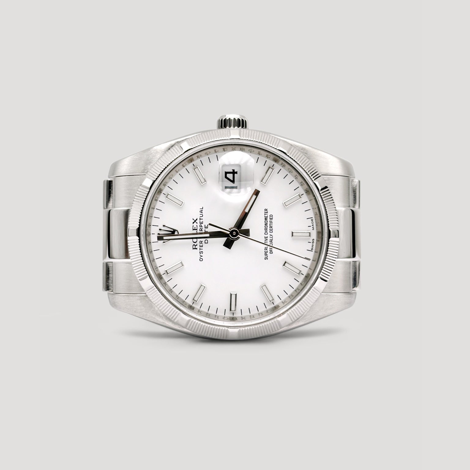 Mint Rolex Oyster Perpetual Date White 34mm 115210